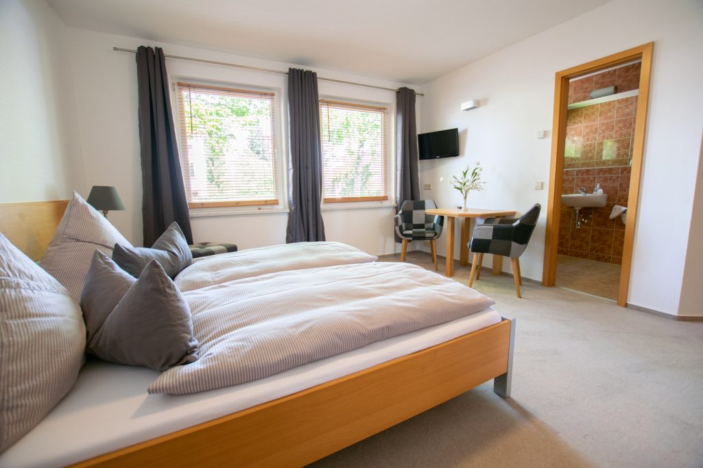 Alle unsere Zimmer sind mit einem eigenen Bad, Fernseher, Telefon und W-Lan ausgestattet.